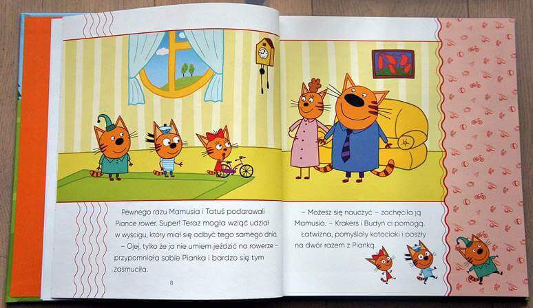 To seria 10 opowiadań o trzech rudych kotkach o bardzo oryginalnych imionach Pianka, Budyń i Krakers. Książka jest bardzo ładnie wydana. Gruba kolorowa okładka zachęca, aby zajrzeć do środka. Wewnątrz znajdziemy mnóstwo kolorowych ilustracji, które z pewnością spodobają się najmłodszym. Opowiadania napisane są zrozumiałym dla dzieci językiem, a do tego literki są odpowiednio duże. Dzięki temu młodsze dziecko, które chciałoby samo przeczytać bajkę z pewnością nie będzie miało z tym problemu. Historyjki są bardzo przyjemne, napisane z humorem i zrozumiale dla dzieci. Myślę, że są to doskonałe bajeczki do poczytania przed snem.
